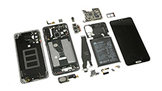 華為P20 Pro拆解剖析圖,可以看到分別是手機后蓋、手機外框、手機主板、揚聲器、攝像頭、電池、軟板、馬達、硬板、SIM卡槽、屏幕等。激光加工技術應用到手機制造的工藝應用主要表現在紫外激光切割、激光鉆孔、激光打標、激光焊接等。