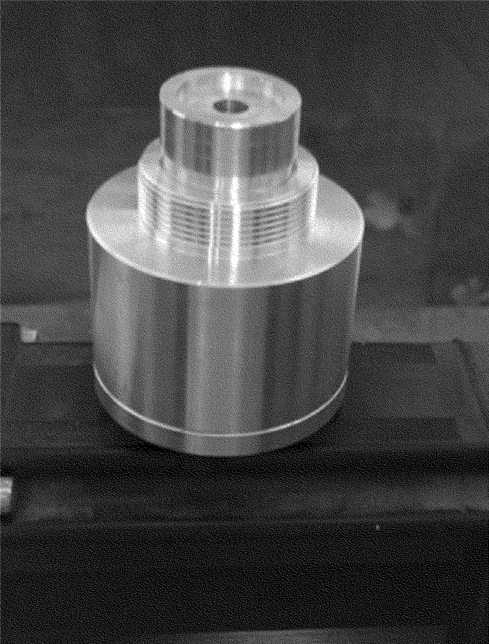 耦合裝置是實現激光與微水束耦合并傳輸的關鍵部件。耦合裝置主要由噴嘴體、進水孔、O型圈、噴嘴支架等組成,如圖 2所示。本文中將噴嘴設計成圓柱形,目的是為了延長微水束的破碎長度。考慮到激光的能量密度比較大,且激光要在噴嘴內部發生全反射,故噴嘴材料選用耐熱性比較好的銅。各參量具體數值為:噴嘴長度為10mm,噴嘴直徑為0.4mm,耦合間隙為0.4mm。噴嘴體頂部的定位圓柱體6與噴嘴支架4通過螺紋連接,高壓水從左右兩側的注水口注入耦合裝置,并進入噴嘴體與光學玻璃之間形成的耦合間隙,然后通過噴嘴片上的噴嘴將耦合之后的光液高能束噴射出來。圖 3為耦合裝置的實物照片。
