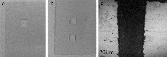 (2) 在噴口口徑為0.4mm、水束壓力為20MPa、激光功率為48W、切割速率為20mm/s時進行玻璃的微水導激光切割。厚度為0.5mm及1.0mm的玻璃試樣的切割表面均比較光滑、基體內無微裂紋存在,切縫寬度約為100μm,但1.0mm厚的玻璃試樣切割邊緣有毛刺及崩邊現象出現。